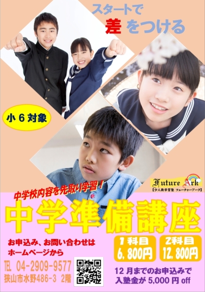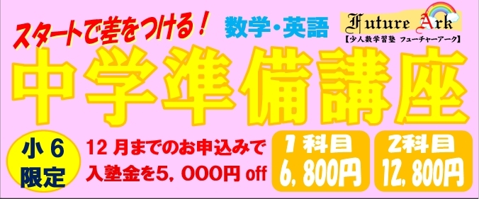 【小学6年生対象】中学準備講座、授業料毎月半額のお申込みは残りわずかです。