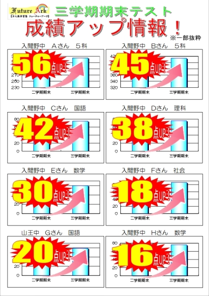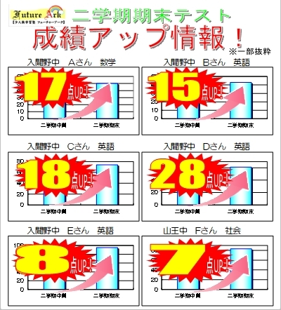 二学期中間テスト成績アップを掲載しました