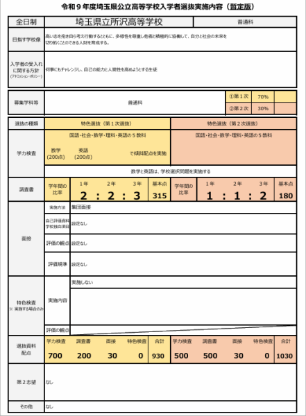 令和9年度入試(新中3より対象)より入試が変わります。大きな変更点は以下の2つです。①面接が全ての学校で実施 これまでの体験を振り返り、力を注いだことや努力したこと、また、高校入学後や将来取り組みたいこと、自己PRなどを自己評価資料を参考に表現します。※最大30点(学校によっては最大60点)②学力検査におけるマークシート方式を導入 記述は約1割程度で作文の出題は無くなります。ここで、もっと重要なことをお伝えします。各学校における選抜内容が埼玉県のHPで発表されております。中でも特出すべきは一部の学校で傾斜配点を採用していることです。例えば所沢高校では数学と英語は200点満点になっております。今まで、学校選択問題の難易度により、数学、英語ではほとんど差がつかないので、社会や理科で大きく差をつければ合格に近づくため特別な対応をしている塾も多かったと思います。しかし、傾斜配点がある学校では数学、英語を1年生からしっかり身につけた状態で5科目の点数を上げることが主な戦い方になります。当塾では普段の授業で数学、英語を特化して、講習や入試対策で5科目の対策を行っています。まさに塾生にとってはチャンスが広がったと感じます。正しい戦い方で後悔の無い受験を!